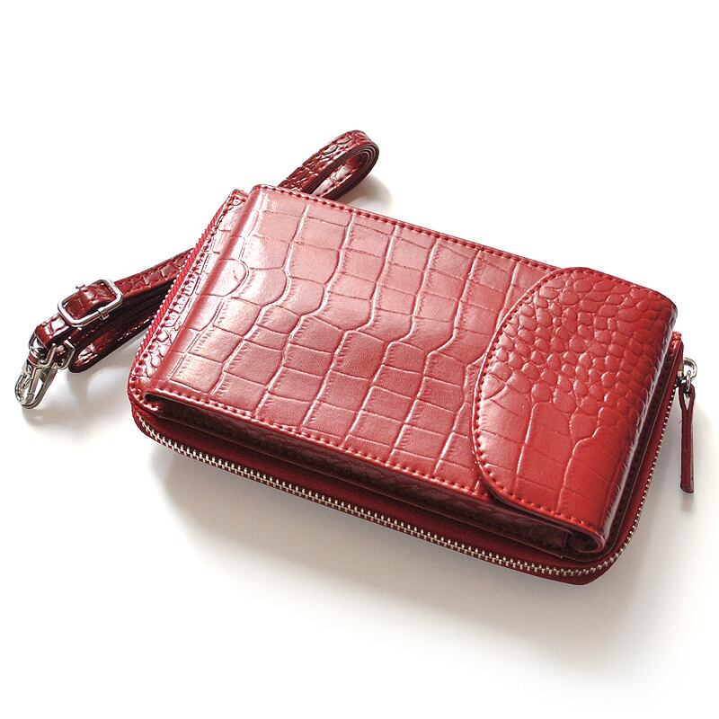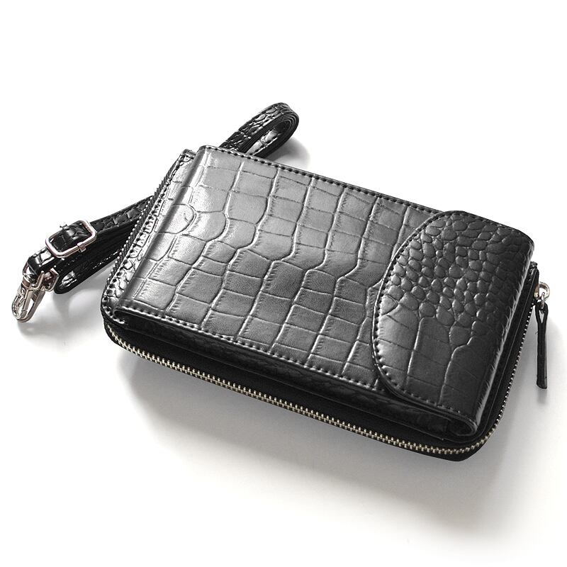 牛革クロコ型押し財布機能付き/スマートフォンポーチ