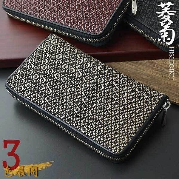 長財布 ラウンドファスナー ロングウォレット 印伝 鹿革×漆付け 伝統工芸 和柄小物 菱菊