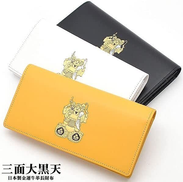 牛革 三面大黒天柄 シャンタン生地 金運&開運UP 日本製 ロングウォレット