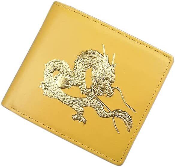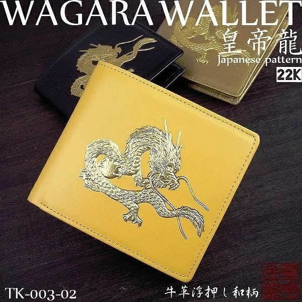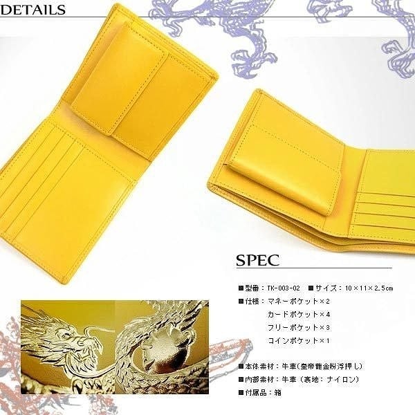 牛革カウハイド 短財布 22K金箔 皇帝龍浮き押し加工 ショートウォレット
