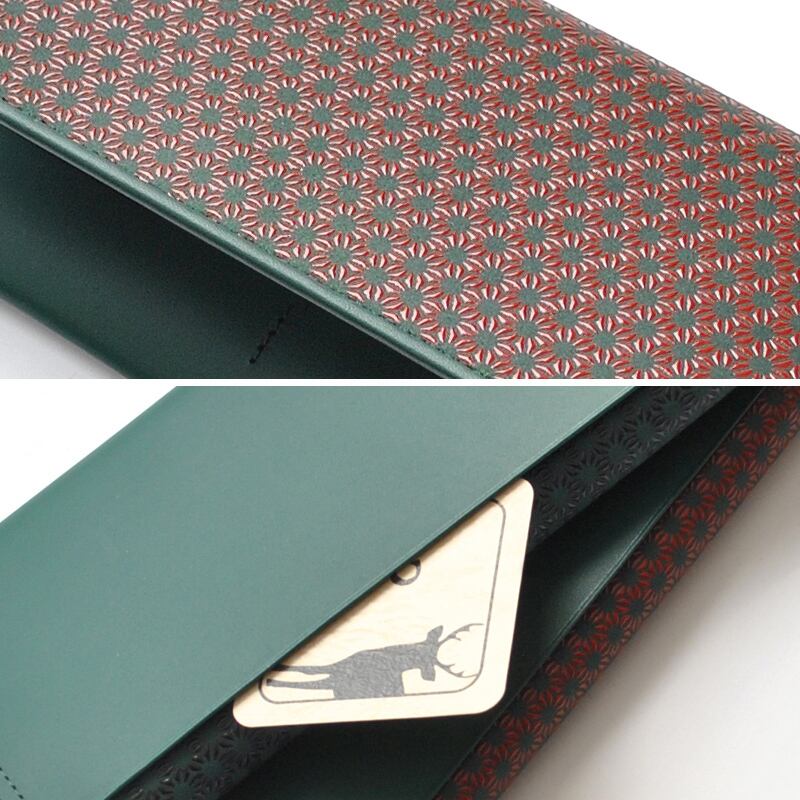 上質な日本製鹿革に、緑×薄茶・緑×黒・緑×紅の3色展開。