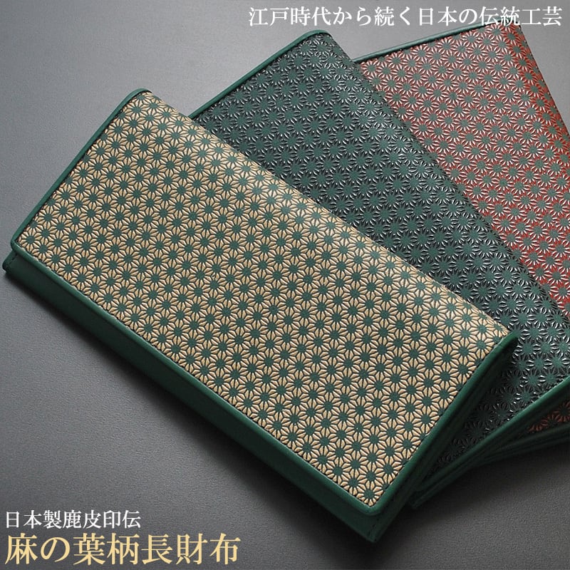 鹿革 麻の葉柄 長財布 スタンダード ロングウォレット 伝統工芸 印伝 希少価値