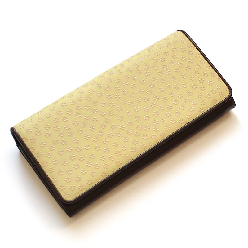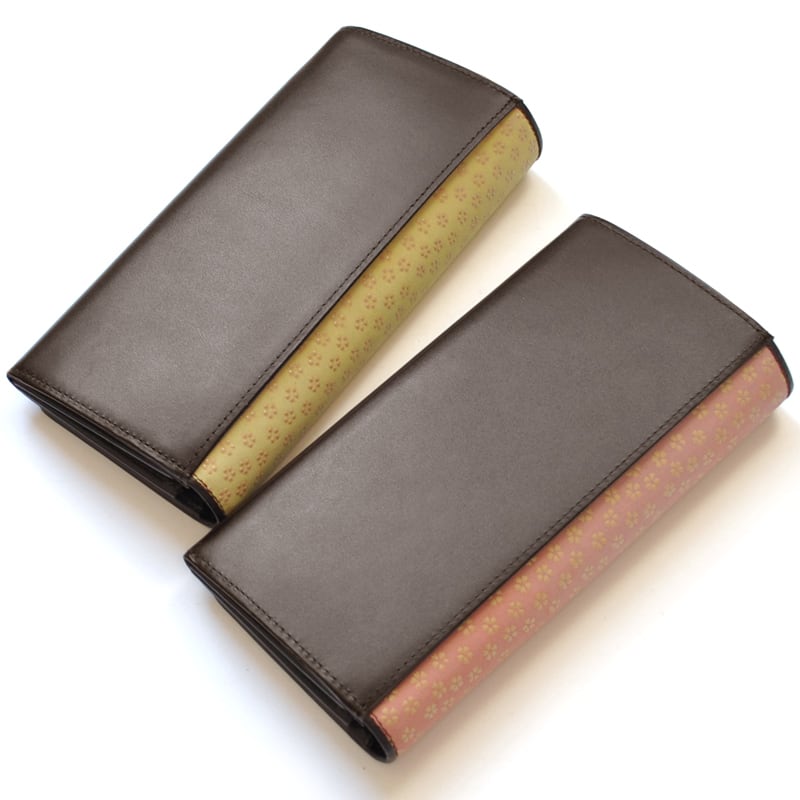 やさしい桜色と若草色が、春の訪れを感じさせる長財布。