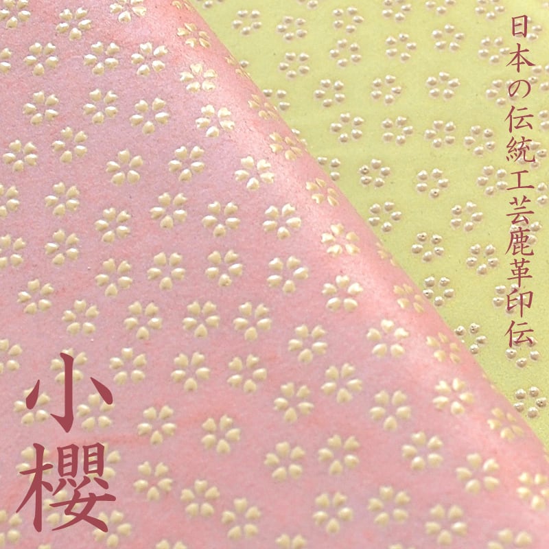 上質な鹿革に、伝統工芸「印伝」の技法で繊細な小桜模様をあしらいました。