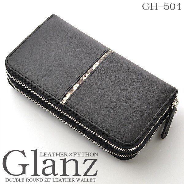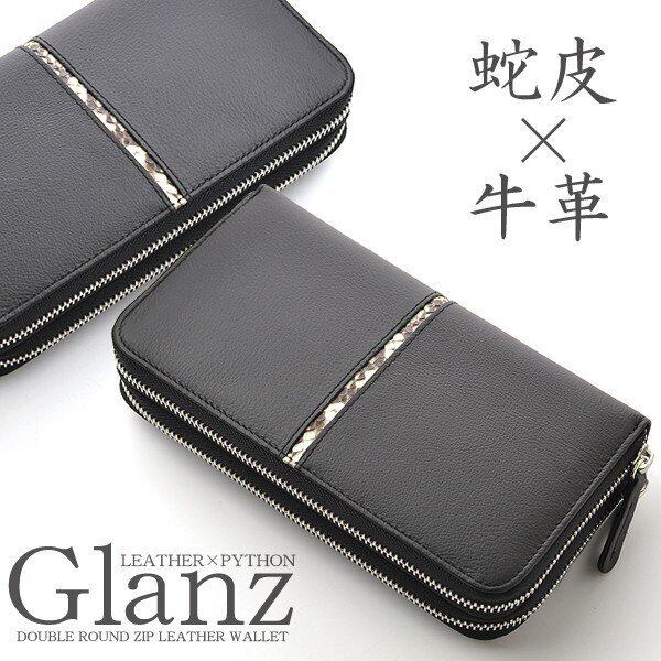 Glanz 牛革×蛇革 ダブルファスナー長財布 大容量 Wラウンドファスナー財布