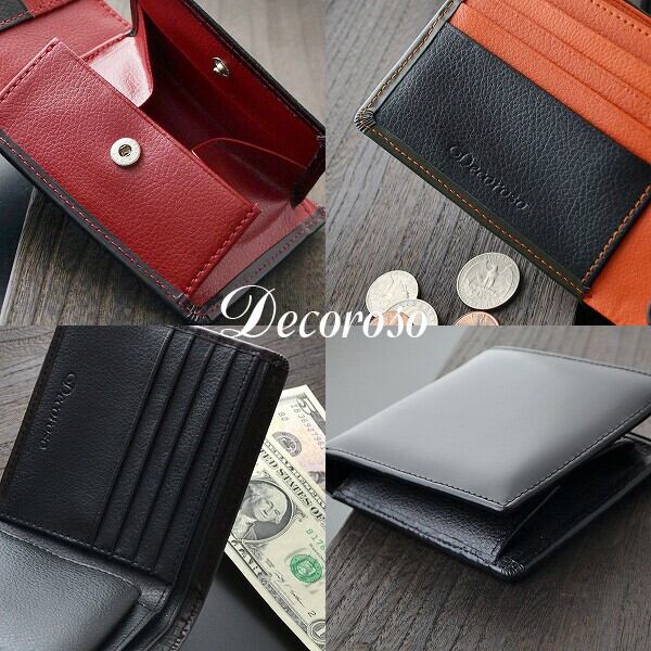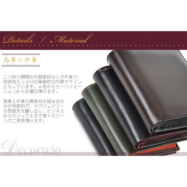 デコローゾ 上品 シンプル デザイン 4色展開 メンズ馬革 短財布