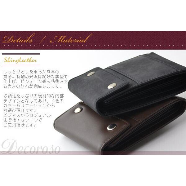 デコローゾ[上品な、気品のある]の名にふさわしい製品、シンプルなデザインに仕上がり、機能性に優れた大人のウォレット。ヴィンテージ調の仕上がりは、お洒落な男を惜しみなく演出。充実のカード収納量。飽きさせないシンプルな2つ折り財布。