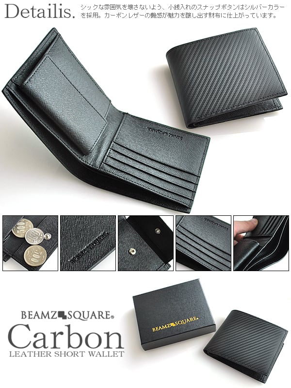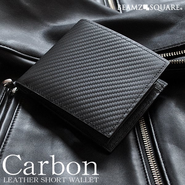 BEAMZSQUARE カーボンレザー グレインレザー 折財布 フルレザー/ブラック