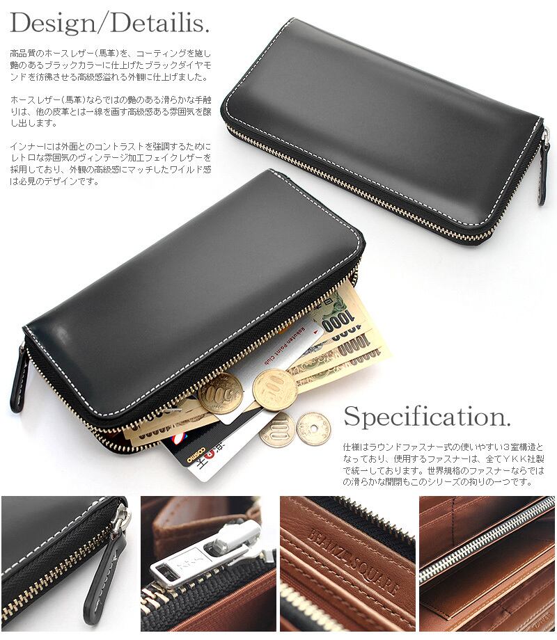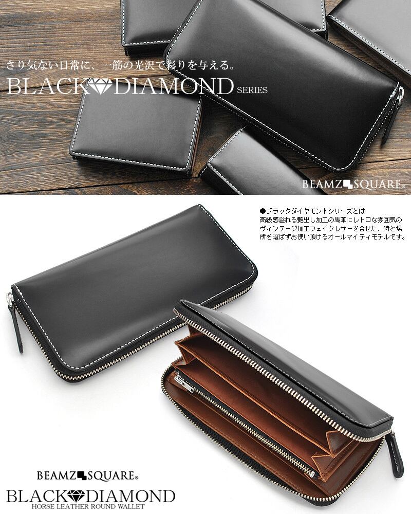 BEAMZSQUARE ブラックダイヤ 馬革 ラウンドファスナー 長財布 BLACK