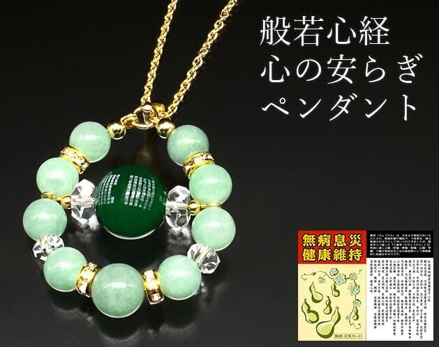 般若心経 ヒーリングストーン ペンダント 緑メノウ グリーンクォーツァイト 白水晶